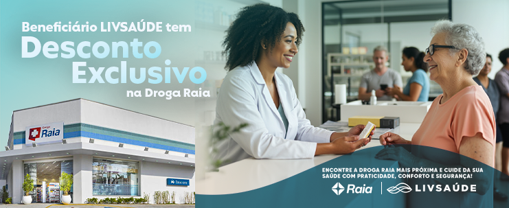 Saúde e Economia: Desconto Exclusivo LIVSAÚDE na Droga Raia! Temos uma excelente notícia para você, Beneficiário LIVSAÚDE! Sua saúde e bem-estar acabam de ganhar um reforço, e o seu bolso agradece....